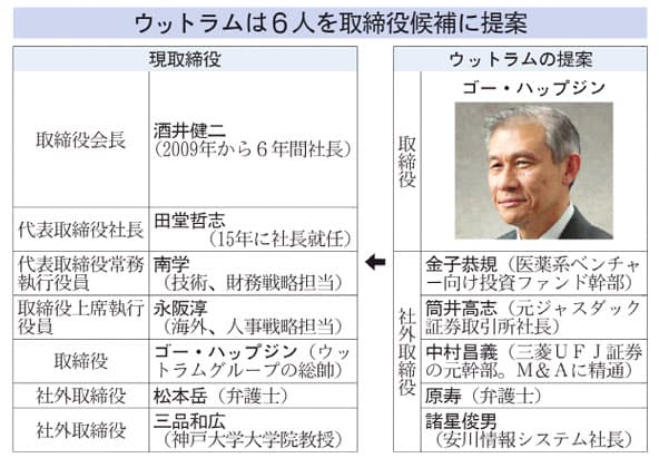 取締役の上限は10人で、3月の定時株主総会で可決されれば過半数を占める。 現在はWuthelamのGoh Hup Jin社長が取締役となっているが、元ジャスダック証券取引所社長の筒井高志氏や安川情報システムの諸星俊男社長など5人を社外取締役の候補とした。